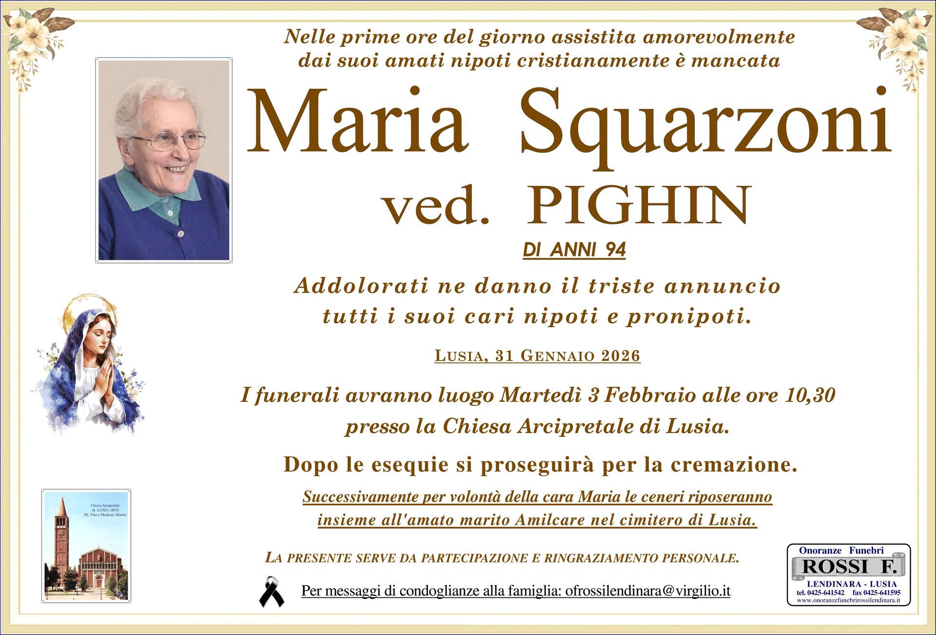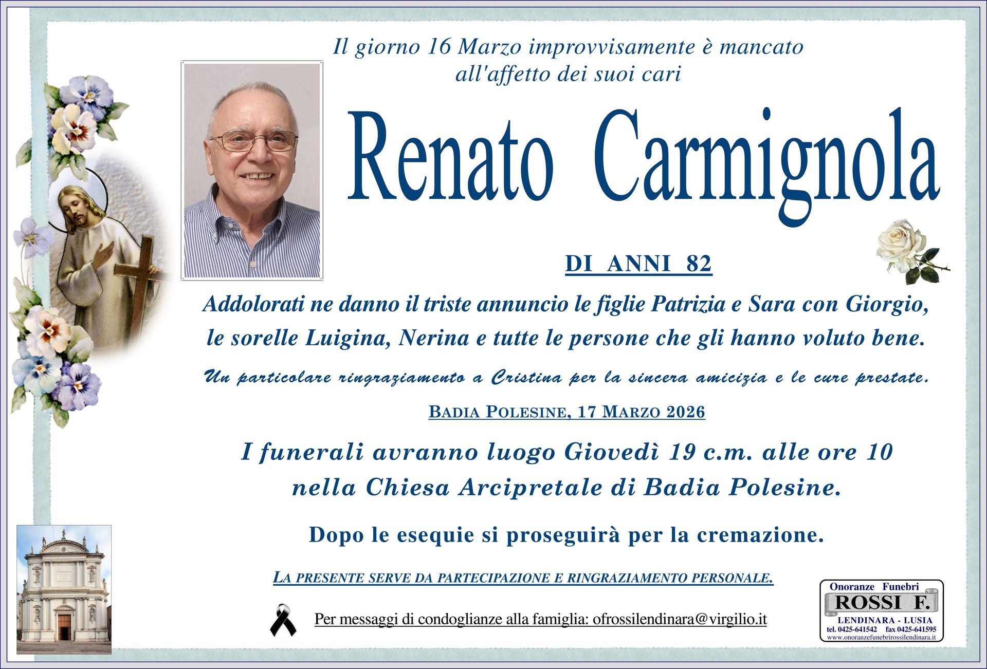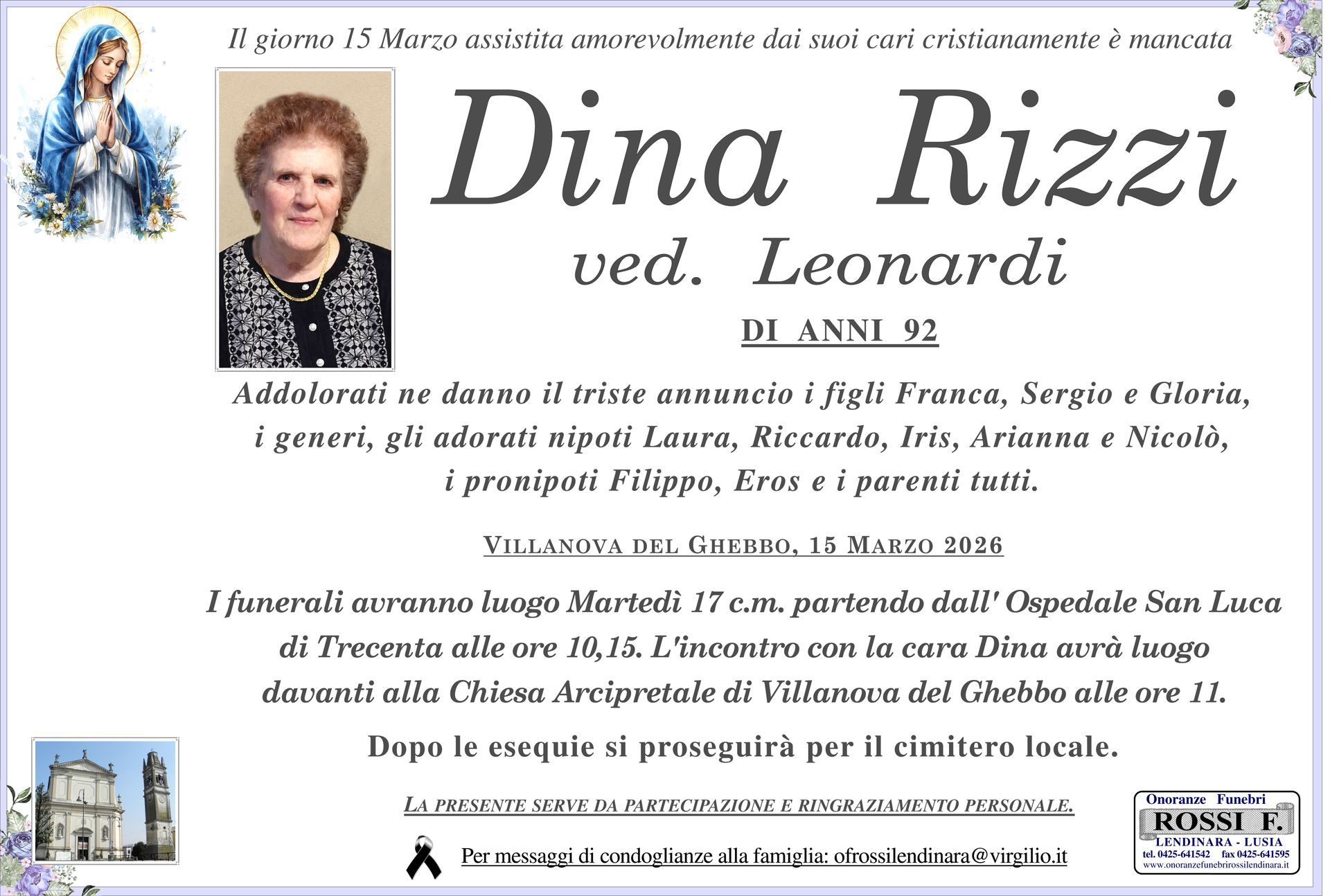 Contattate l'agenzia di Lendinara per richiedere i suoi servizi funebri completi in tutta la provincia di Rovigo